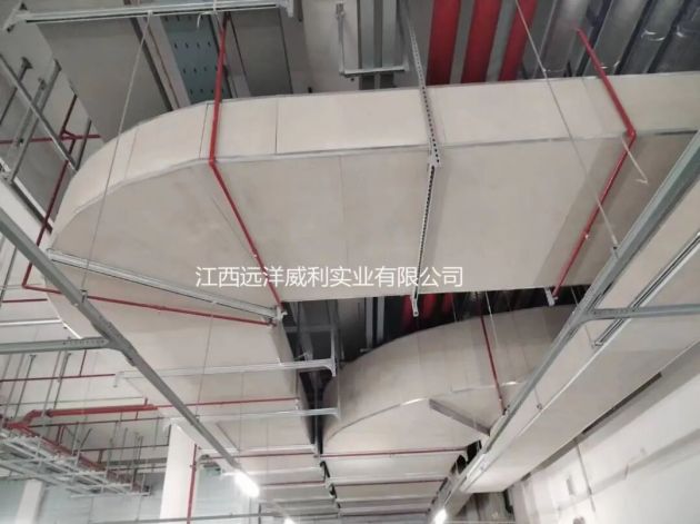 【Smoke Prevention and Exhaust Duct Case】Huawei Shanghai R&D Center Group E Air ducts, as the "capillaries" of buildings, are the "fire-fighting magic weapon" of the entire project. In the event of a fire, they are key fire-fighting facilities for effectively controlling smoke. To this end, the project team adopted high fire-resistant fireproof wrapping combined with continuous construction technology of fireproof wrapping, which avoided the brackets blocking the fireproof wrapping, protected the integrity of the pipes of the smoke prevention and exhaust system, and effectively ensured the safety of buildings or equipment in case of fire. Yuanyang Weil silicate kaolin composite fireproof board is an independent research and development and design of smoke prevention and exhaust duct system production and installation technology by Yuanyang Weil after 5 years, in combination with many experts in the field of smoke prevention and exhaust system production and installation, on the basis of comprehensively considering the factors of the whole process such as production, transportation and installation, and with reference to standards such as JG/T258-2018, JG/T141-2017 and GB 50243-2016. It has significantly reduced the overall weight and comprehensive cost of the smoke prevention and exhaust system. Yuanyang Weil smoke prevention and exhaust duct system has passed the tests of the National Fireproof Building Materials Quality Supervision and Inspection Center and the Tianjin Fire Research Institute of the Ministry of Emergency Management, and has passed the 1-hour, 2-hour and 3-hour fire resistance tests. Project Details