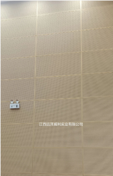 產(chǎn)品應(yīng)用優(yōu)勢(shì) (一)出色的吸音功能,提升空間聲學(xué)環(huán)境 灰硅飾面板(穿孔)采用獨(dú)特的穿孔設(shè)計(jì),結(jié)合遠(yuǎn)洋威利低密度灰硅基層板的材料特性,形成高效吸音結(jié)構(gòu),其表面的細(xì)密穿孔與板材內(nèi)部的微孔結(jié)構(gòu),能夠有效吸收不同頻率的聲音,減少聲音反射與共振。在此次多媒體空間吸音墻的項(xiàng)目應(yīng)用中,該材料大幅降低了空間內(nèi)的回聲干擾,無論是演講時(shí)清晰的語音傳遞,還是影音播放時(shí)震撼的音效呈現(xiàn),為使用者帶來了沉浸式的視聽體驗(yàn)。 (二)施工便利,高效推進(jìn)項(xiàng)目進(jìn)程 相比傳統(tǒng)吸音材料復(fù)雜的安裝工藝,灰硅飾面板(穿孔)具有施工便捷的顯著優(yōu)勢(shì):其板材規(guī)格標(biāo)準(zhǔn),可根據(jù)墻面尺寸進(jìn)行定制加工,減少現(xiàn)場(chǎng)切割損耗,安裝過程通過簡單的拼接、自攻螺絲固定方式,即可快速完成墻面鋪設(shè)。施工團(tuán)隊(duì)利用這一特點(diǎn),有效縮短了施工周期,降低了人工成本,同時(shí)減少了施工過程中對(duì)周邊環(huán)境的影響,確保大會(huì)堂能夠盡快恢復(fù)使用,滿足市民的文化活動(dòng)需求。 (三)綠色環(huán)保,守護(hù)公共健康 在環(huán)保意識(shí)日益增強(qiáng)的今天,公共建筑的材料選擇尤為關(guān)鍵;夜栾椕姘澹ù┛祝┎捎铆h(huán)保型原材料制作,經(jīng)權(quán)威機(jī)構(gòu)檢測(cè),其甲醛釋放量遠(yuǎn)低于國家標(biāo)準(zhǔn),在長沙縣市民大會(huì)堂的應(yīng)用中,該材料不僅為使用者營造了健康安全的室內(nèi)環(huán)境,也符合公共建筑在環(huán)保方面的高,體現(xiàn)了項(xiàng)目團(tuán)隊(duì)對(duì)可持續(xù)發(fā)展理念的踐。 (四)聲學(xué)與美學(xué)的統(tǒng)一性,打造功能與視覺的雙重價(jià)值 灰硅飾面板(穿孔)通過精密的穿孔孔徑與排列設(shè)計(jì),將聲學(xué)性能與空間美學(xué)深度融合,其表面的穿孔圖案可根據(jù)室內(nèi)設(shè)計(jì)風(fēng)格定制為幾何矩陣、漸變韻律等造型,不僅能通過孔結(jié)構(gòu)與板材內(nèi)部微孔形成高效吸音體系,還能以規(guī)律性的孔洞排列構(gòu)成視覺效果,使吸音墻成為空間內(nèi)的藝術(shù)裝置,穿孔設(shè)計(jì)結(jié)合燈光效果,在解決回聲問題的同時(shí),為多空間增添了現(xiàn)代藝術(shù)感,可實(shí)現(xiàn) “降噪即造景” 的設(shè)計(jì)理念。 (五)表面樣式多元化,適配多元場(chǎng)景需求 支持多樣化表面處理工藝,可滿足不同建筑風(fēng)格的美學(xué)要求: 色彩定制:通過覆膜工藝實(shí)現(xiàn)乳白、木紋等基礎(chǔ)色系,或根據(jù)空間主色調(diào)調(diào)配專屬色號(hào); 紋理質(zhì)感:表面可呈現(xiàn)木紋、石紋、布紋、金屬拉絲等肌理,增強(qiáng)觸覺與視覺的層次感; 圖案定制:可在穿孔基礎(chǔ)上疊加雕刻工藝,嵌入城市文化符號(hào)、藝術(shù)紋樣等個(gè)性化圖案,使吸音墻成為兼具功能與文化屬性的空間標(biāo)識(shí)。